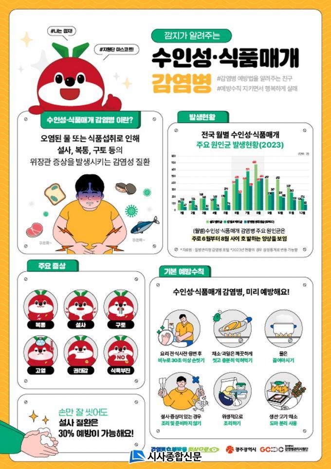 ¼öÀμº¡¤½Äǰ¸Å°³ °¨¿°º´À» ¿¹¹æÇÏ·Á¸é ¡ãÈ帣´Â ¹°¿¡ 30ÃÊ ÀÌ»ó ºñ´©·Î ¼Õ ¾Ä±â ¡ãÀ½½ÄÀº ÃæºÐÈ÷ ÀÍÇô ¸Ô±â ¡ã¹°Àº ²ú¿© ¸¶½Ã±â ¡ãä¼Ò¡¤°úÀÏÀº ±ú²ýÇÑ ¹°¿¡ ¾Ä°Å³ª ²®Áú ¹þ°Ü ¸Ô±â ¡ã¼³»ç Áõ»óÀÌ ÀÖÀ¸¸é À½½Ä Áغñ³ª Á¶¸®ÇÏÁö ¾Ê±â ¡ãÀ§»ýÀûÀ¸·Î Á¶¸®Çϱ⠡ãÄ®‧µµ¸¶´Â Á¶¸® ÈÄ ¼Òµ¶ÇÏ°í »ý¼±¡¤°í±â¡¤Ã¤¼Ò µµ¸¶ ºÐ¸® »ç¿ë µî ¿¹¹æ¼öÄ¢À» ÁöÄÑ¾ß ÇÑ´Ù.