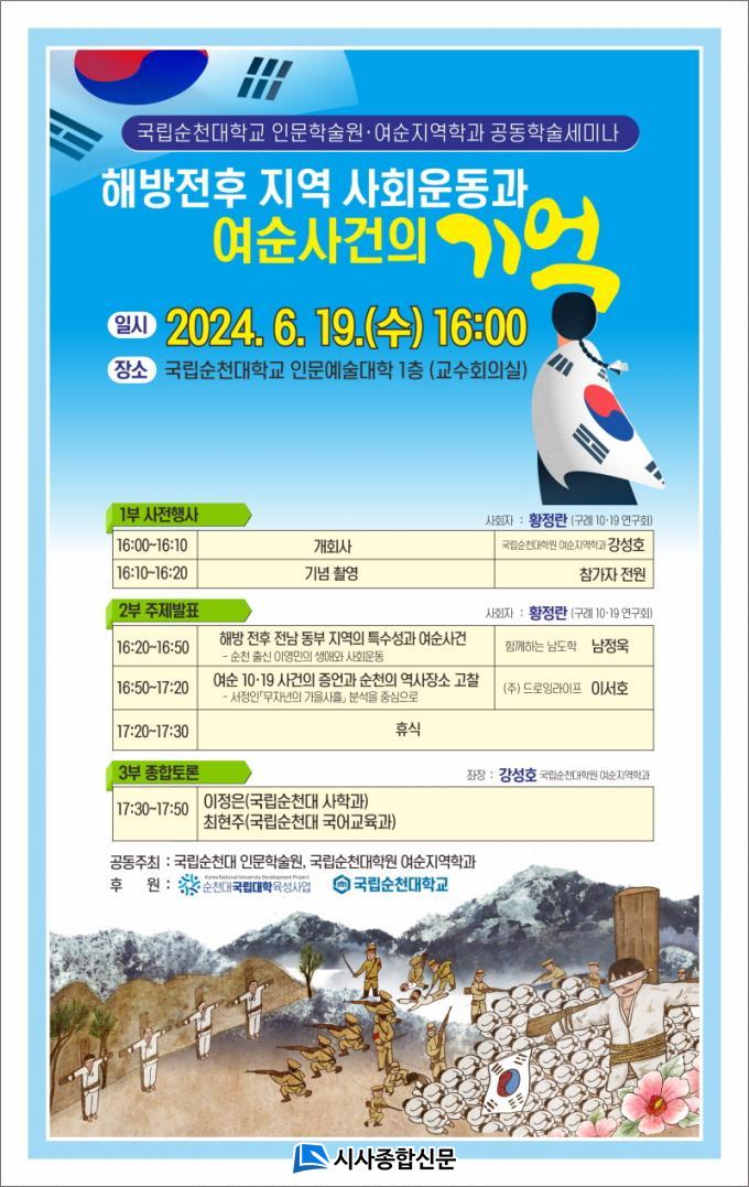 À̹ø 2ºÎ Çмú´ëȸ ÁÖÁ¦ ¹ßÇ¥¿¡¼´Â ȲÁ¤¶õ¾¾(±¸·Ê 10¡¤19 ¿¬±¸È¸)ÀÇ »çȸ·Î ¡âÇØ¹æ ÀüÈÄ Áö¿ªÀÇ Æ¯¼ö¼º°ú ¿©¼ø»ç°Ç -¼øÃµ Ãâ½Å ÀÌ¿µ¹ÎÀÇ »ý¾Ö¿Í »çȸ¿îµ¿- (³²Á¤¿í, ÇÔ²²ÇÏ´Â ³²µµÇÐ) ¡â¿©¼ø 10¡¤19»ç°Ç Áõ¾ð°ú ¼øÃµÀÇ Àå¼Ò °íÂû ? ¼Á¤ÀÎ ¡®¹«ÀÚ³âÀÇ °¡À»»çÈꡯ ºÐ¼®À» Áß½ÉÀ¸·Î (À̼ȣ, ¢ßµå·ÎÀ×¶óÀÌÇÁ) µî ¿¬±¸ ¼º°ú°¡ ¹ßÇ¥µÉ ¿¹Á¤ÀÌ´Ù. ÀÌÈÄ 3ºÎ¿¡¼´Â °¼ºÈ£ ±¹¸³¼øÃµ´ëÇпø ¿©¼øÁö¿ªÇаúÀåÀÌ ÁÂÀåÀ» ¸Ã¾Æ ÀÌÁ¤Àº(±¹¸³¼øÃµ´ëÇб³ »çÇаú), ÃÖÇöÁÖ(±¹¸³¼øÃµ´ë ±¹¾î±³À°°ú) ±³¼ö µî ¿©¼ø»ç°Ç¿¡ ´ëÇÑ ºÐ¾ßº° Àü¹® ±³¼öµéÀÌ Âü¿©ÇÑ Á¾ÇÕÅä·ÐÀÌ ÁøÇàµÈ´Ù.