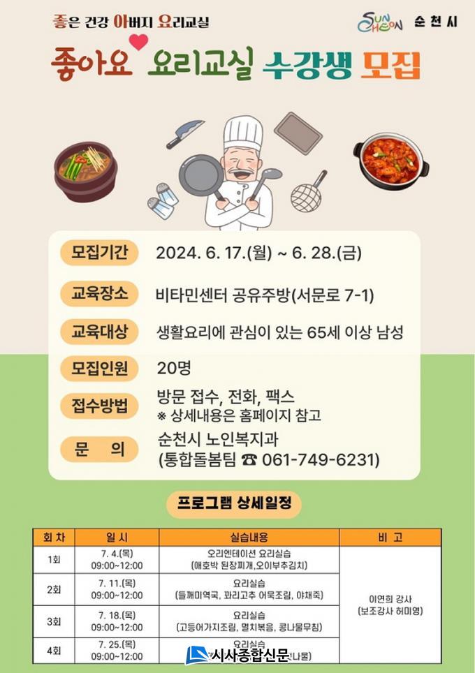 ¡®ÁÁ¾Æ¿ä¡¯´Â ¡®ÁÁÀº °Ç° ¾Æ¹öÁö ¿ä¸®±³½Ç¡¯ÀÇ ÁÙÀÓ¸»ÀÌ´Ù. À̹ø ¿ä¸® ±³½ÇÀº °í·ÉÈ »çȸ¿¡ ¸ÂÃç ¾î¸£½Åµé¿¡°Ô ¸ÂÃã½Ä ¿ä¸® ±³À°À» Á¦°øÇÏ¿© °Ç°ÇÑ ½Ä»ýȰ °ü¸®¿Í »çȸ Âü¿© ±âȸ¸¦ Á¦°øÇϱâ À§ÇØ ¸¶·ÃµÆ´Ù.
