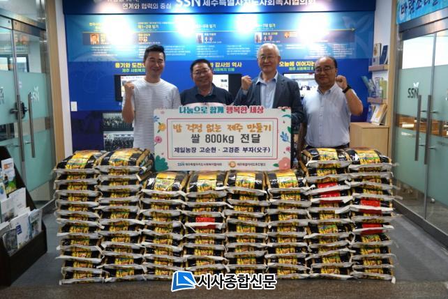[½Ã»çÁ¾ÇսŹ® = °í¼º¹Î ±âÀÚ] Á¦ÀϳóÀå °í¼øÇö ȸÀå°ú °í°æÁØ ´ëÇ¥´Â 20ÀÏ, Á¦ÁÖÆ¯º°ÀÚÄ¡µµ»çȸº¹ÁöÇùÀÇȸ(ȸÀå °í½ÂÈ)¿¡¼ ÁøÇà ÁßÀÎ ¡®2024 ¹ä °ÆÁ¤ ¾ø´Â Á¦ÁÖ ¸¸µé±â¡¯ ¸±·¹ÀÌ ½Ò ±âºÎ Ä·ÆäÀο¡ ÇÔ²²ÇÏ¸ç ½Ò 800kgÀ» Àü´ÞÇß´Ù.