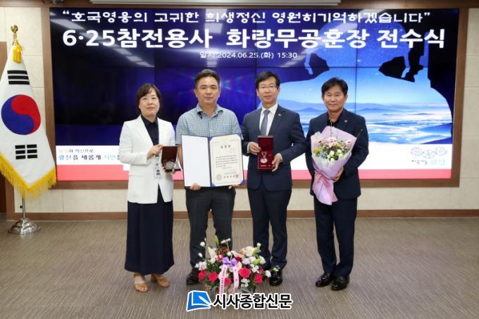 ±¤»ê±¸´Â 6‧25 ÀüÀï ´ç½Ã ÈÆÀå ¼ö¿©°¡ °áÁ¤µÆÀ¸³ª ¾ÆÁ÷ ÈÆÀåÀ» ¹ÞÁö ¸øÇÑ ¹«°ø¼öÈÆÀÚ ¶Ç´Â À¯°¡Á·¿¡°Ô ÈÆÀåÀ» Àü´ÞÇϱâ À§ÇØ ±¹¹æºÎ°¡ ÁøÇàÇϰí ÀÖ´Â ¡®6‧25 ÀüÀï ¹«°øÈÆÀå ÁÖÀΰø ã±â Ä·ÆäÀΡ¯¿¡ µû¶ó 74³â ¸¸¿¡ °í±¹À» ÁöŲ ¿µ¿õÀÇ À¯Á·¿¡°Ô ÈÆÀåÀ» Àü¼öÇÏ°Ô µÆ´Ù.