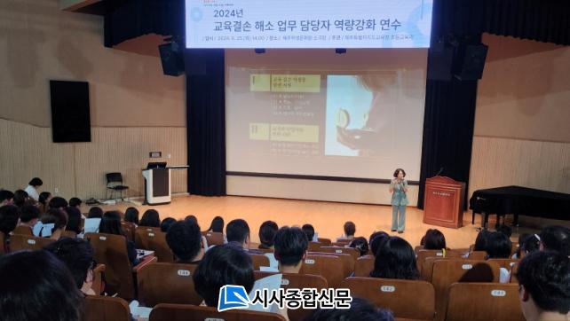 [½Ã»çÁ¾ÇսŹ® = °í¼º¹Î ±âÀÚ] Á¦ÁÖÆ¯º°ÀÚÄ¡µµ±³À°Ã»(±³À°°¨ ±è±¤¼ö, ÀÌÇÏ µµ±³À°Ã»)Àº Áö³ 25ÀÏ Á¦ÁÖÇлý¹®È¿ø ¼Ò±ØÀå¿¡¼ ±³À°°á¼Õ ÇØ¼Ò »ç¾÷ÀÇ ³»½Çȸ¦ À§ÇØ¡®2024³â ±³À°°á¼Õ ÇØ¼Ò ¾÷¹« ´ã´çÀÚ ¿ª·® °È ¿¬¼ö¡¯¸¦ ½Ç½ÃÇÏ¿´´Ù.