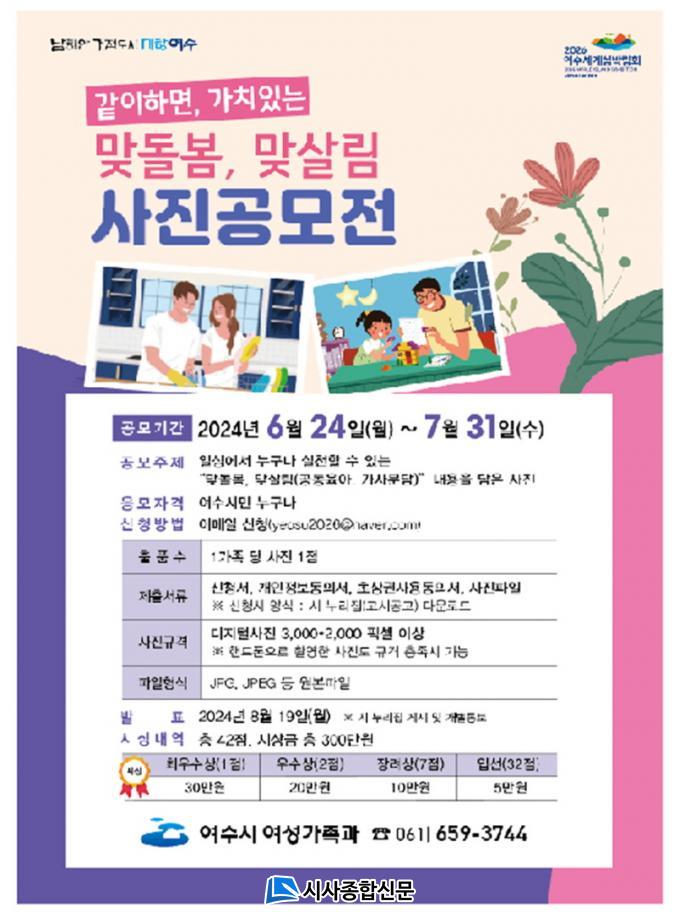 ¿©¼ö ½Ã¹Î ´©±¸³ª ³»´Þ 7¿ù 31ÀϱîÁö ½Ã ´©¸®Áý¿¡¼ ½Åû¼¸¦ ³»·Á ¹Þ¾Æ »çÁøÀÛǰ°ú ÇÔ²² e-¸ÞÀÏ(yeosu2026@naver.com)·Î ÀÀ¸ðÇÒ ¼ö ÀÖ´Ù.