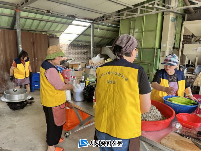 À̳¯ ÇÔÆòÀ¾ Áö¿ª»çȸº¸ÀåÇùÀÇü À§¿øµéÀº À̸¥ ¾ÆÄ§ºÎÅÍ Á÷Á¢ ÀåÀ» º¸°í ±¹°ú ¹ÝÂùÀ» Æ÷ÇÔÇÑ ¹Ø¹ÝÂù 20¼¼Æ®¸¦ ¸¸µé¾ú´Ù. ¾Æ¿ï·¯ ¿Ï¼ºµÈ ¹Ø¹ÝÂùÀ» ¼¼´ëº°·Î Àü´ÞÇÏ¸é¼ ÁÖ°Åȯ°æ Á¡°Ë ¹× Ãë¾à°èÃþÀÇ ½Ä»ýȰÀ» ¸ð´ÏÅ͸µÇÏ´Â µî ¹Î°£ º¹ÁöÁö¿ø Ȱµ¿À» À̾´Ù.