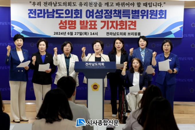 Àü¶ó³²µµÀÇȸ Á¦382ȸ ÀÓ½Ãȸ º»È¸ÀǸ¦ ÅëÇØ ÀÇÀå´Ü°ú »óÀÓÀ§¿øÀå ¼±°Å°¡ Ä¡·¯Áø 6¿ù 27ÀÏ ¿À´Ã, ¿©¼ºÁ¤Ã¥Æ¯º°À§¿øÈ¸ À§¿øµéÀÌ ÇÕ½ÉÇÏ¿© Àü¶ó³²µµÀÇȸÀÇ º¯È¸¦ Ã˱¸Çß´Ù.