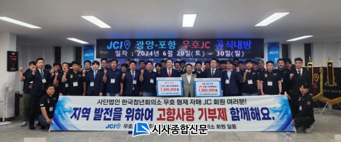 Áö³ 29ÀÏ¿¡´Â Æ÷Ç×JC ȸ¿ø 30¿© ¸íÀÌ ½Ã¸¦ ³»¹æÇÏ¿© ±¤¾çJC »ç¹«±¹¿¡¼ °íÇâ»ç¶û ±âºÎ±Ý »óÈ£±âºÎ ±â³ä½ÄÀ» ºñ·ÔÇØ ³»¹æ Çà»ç¸¦ °¡Áø ÈÄ ±¤¾ç±¹¹ÎüÀ°¼¾ÅÍ¿¡¼ ´ÜÇÕ´ëȸ¸¦ °³ÃÖÇÏ´Â µî ÈÇÕÀÇ ½Ã°£À» °¡Á³´Ù.