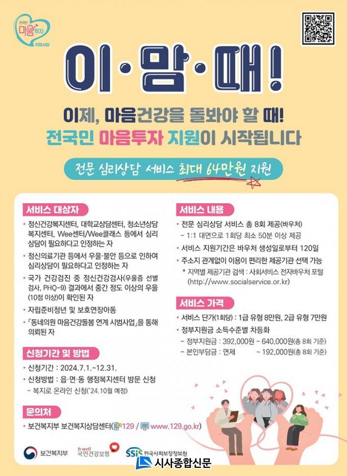 Áö¿ø´ë»óÀº ¡ãÁ¤½Å°Ç°º¹Áö¼¾ÅÍ, ´ëÇб³»ó´ã¼¾ÅÍ, û¼Ò³â »ó´ãº¹Áö¼¾ÅÍ, Wee¼¾ÅÍ/Wee Ŭ·¡½º µî¿¡¼ ½É¸®»ó´ãÀÌ ÇÊ¿äÇÏ´Ù°í ÀÎÁ¤ÇÏ´Â ÀÚ ¡ãÁ¤½ÅÀÇ·á±â°ü µî¿¡¼ ¿ì¿ï ºÒ¾È µîÀ¸·Î ÀÎÇÏ¿© ½É¸®»ó´ãÀÌ ÇÊ¿äÇÏ´Ù°í ÀÎÁ¤ÇÏ´Â ÀÚ ¡ã±¹¹Î °Ç°°ËÁø Áß Á¤½Å°Ç°°Ë»ç(¿ì¿ïÁõ ¼±º°°Ë»ç) °á°ú¿¡¼ Áß°£ Á¤µµ ÀÌ»óÀÇ ¿ì¿ïÀÌ È®ÀÎµÈ ÀÚ ¡ãÀÚ¸³Áغñ û³â ¹× º¸È£¿¬Àå ¾Æµ¿ ¡ã⌜µ¿³×ÀÇ¿ø ¸¶À½°Ç°µ¹º½ ¿¬°è ½Ã¹ü»ç¾÷⌟ ÅëÇØ ÀÇ·ÚµÈ ÀÚ°¡ ÇØ´çµÈ´Ù.