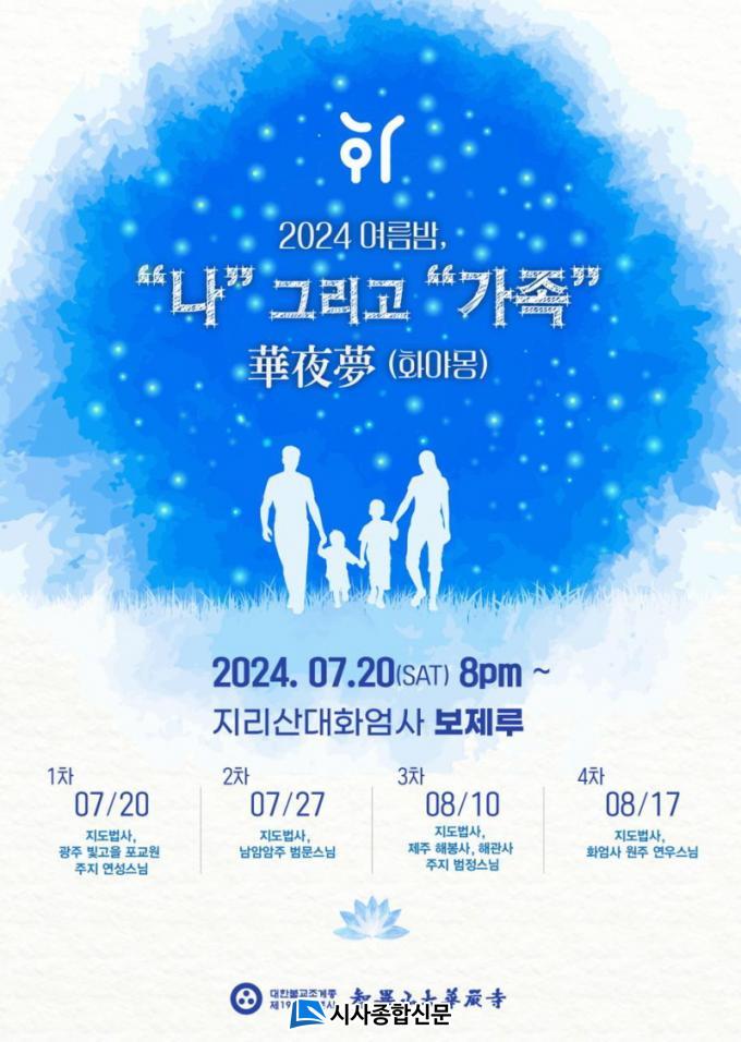 ´ëÇѺұ³Á¶°èÁ¾ 19±³±¸ º»»ç Áö¸®»ê ´ëȾö»ç(ÁÖÁö. ´ö¹®½º´Ô)Àº Çà»ç ´ëÇ¥ ºê·£µå Áß ¡°2024 ¿©¸§¹ã, "³ª" ±×¸®°í "°¡Á·" ü¤å¨ÙÓ(Ⱦ߸ù)¡± À̶ó´Â ½½·Î°ÇÀ¸·Î 1Â÷(7¿ù 20ÀÏ Åä¿äÀÏ) : ½Å¼¼´ë ÀþÀº °¡Á· ÃÊû ÇÁ·Î±×·¥, 2Â÷(7¿ù 27ÀÏ Åä¿äÀÏ) : ºÎºÎ, ¿©ÀÎ ÃÊû ÇÁ·Î±×·¥, 3Â÷(8¿ù 10ÀÏ Åä¿äÀÏ) : ÀÚÀ¯ ½Åû ÃÊû ÇÁ·Î±×·¥, 4Â÷(8¿ù 24ÀÏ Åä¿äÀÏ) : ºÎ¸ð´Ô ¸ð½Ã°í ÇÔ²²ÇÏ´Â ÃÊû ÇÁ·Î±×·¥ µîÀ» 4Â÷¿¡ °ÉÃÄ 2024³â ¿©¸§ Ⱦö»ç °æ³» ¾ß°£°³Àå°ú ÇÔ²² Ⱦ߸ù ÃÊû ÇÁ·Î±×·¥À» °³ÃÖ ÇÑ´Ù°í ¹àÇû´Ù.
