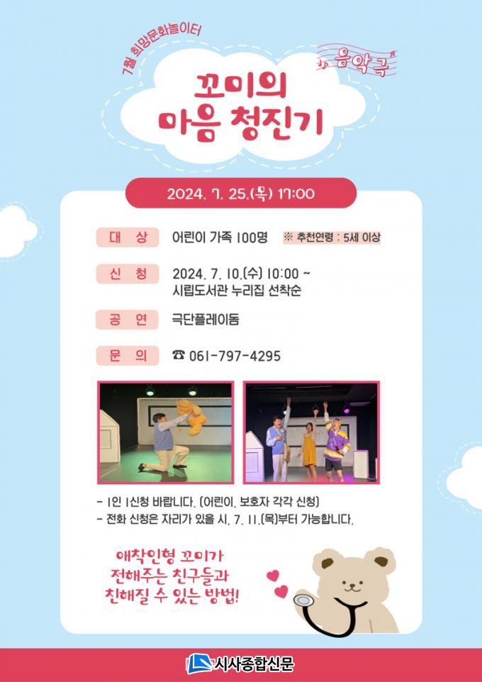 ¡®Èñ¸Á¹®È³îÀÌÅÍ¡¯´Â ¸Å¿ù ¸¶Áö¸· ÁÖ Áö¿ª ¾î¸°ÀÌ °¡Á·À» ´ë»óÀ¸·Î ¹®È °ø¿¬À» ¿î¿µÇÏ´Â ±¤¾çÈñ¸Áµµ¼°üÀÇ Æ¯º° ÇÁ·Î±×·¥ÀÌ´Ù. 7¿ùÀÇ ¡®Èñ¸Á¹®È³îÀÌÅÍ¡¯´Â À½¾Ç±ØÀ¸·Î ¾î¸°ÀÌ °ü°´À» ¸¸³´Ù.