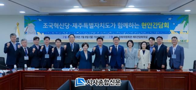 Á¦ÁÖµµ´Â 8ÀÏ ¿ÀÀü ±¹È¸ÀÇ¿øÈ¸°ü Á¦8°£´ãȸ½Ç¿¡¼ Á¶±¹Çõ½Å´ç ¼Ò¼Ó ½ÅÀå½Ä(Á¤¹«À§), Á¤Ãá»ý(Çà¾ÈÀ§) ±¹È¸ÀÇ¿ø ¹× º¸ÁÂÁøµé°ú ÇÔ²² Á¦ÁÖ Çö¾È ÇØ°áÀ» À§ÇÑ °£´ãȸ¸¦ °³ÃÖÇß´Ù°í ¹àÇû´Ù.