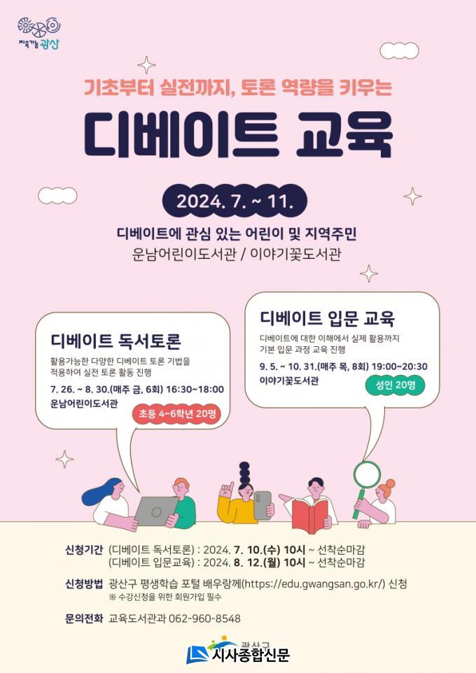 ½ÅûÀº ±¤»ê±¸ ÅëÇÕµµ¼°ü ´©¸®Áý(https://edu.gwangsan.go.kr)¿¡¼ ¿Â¶óÀÎÀ¸·Î Á¢¼öÇÑ´Ù. ¿î³²¾î¸°À̵µ¼°ü ¡®µðº£ÀÌÆ® µ¶¼Åä·Ð¡¯Àº 10ÀϺÎÅÍ, À̾߱â²Éµµ¼°ü ¡®µðº£ÀÌÆ® ÀÔ¹® ±³À°¡¯Àº 8¿ù 12ÀϺÎÅÍ ½ÅûÇÒ ¼ö ÀÖ´Ù.
