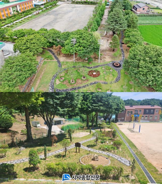 ÀÓ½ÇÃʵîÇб³¿¡´Â ²É»ç°ú, ÆÏ¹è³ª¹«, »êµþ³ª¹«, Àº¸ñ¼, ²É¹«¸©, ¼ö¼±È µî ±³‧°ü¸ñ ¹× ÃÊÈ·ù¸¦ ½ÄÀçÇÏ¿© ÇлýµéÀÌ ½£¼Ó¿¡¼ ½Ä¹°À» °üÂûÇϰí, ÀÚ¿¬À» ü°¨ÇÒ ¼ö ÀÖ´Â ¾Æ¸§´Ù¿î °ø°£À» Á¶¼ºÇß´Ù. ¶ÇÇÑ, ÃʵîÇб³ Çлýµé¿¡°Ô ¾î¿ï¸®´Â ±×³× º¥Ä¡, Æ÷ÅäÁ¸ µîÀ» ¼³Ä¡ÇÏ¿© ÄèÀûÇÑ °ø°£À» Á¶¼ºÇß´Ù.