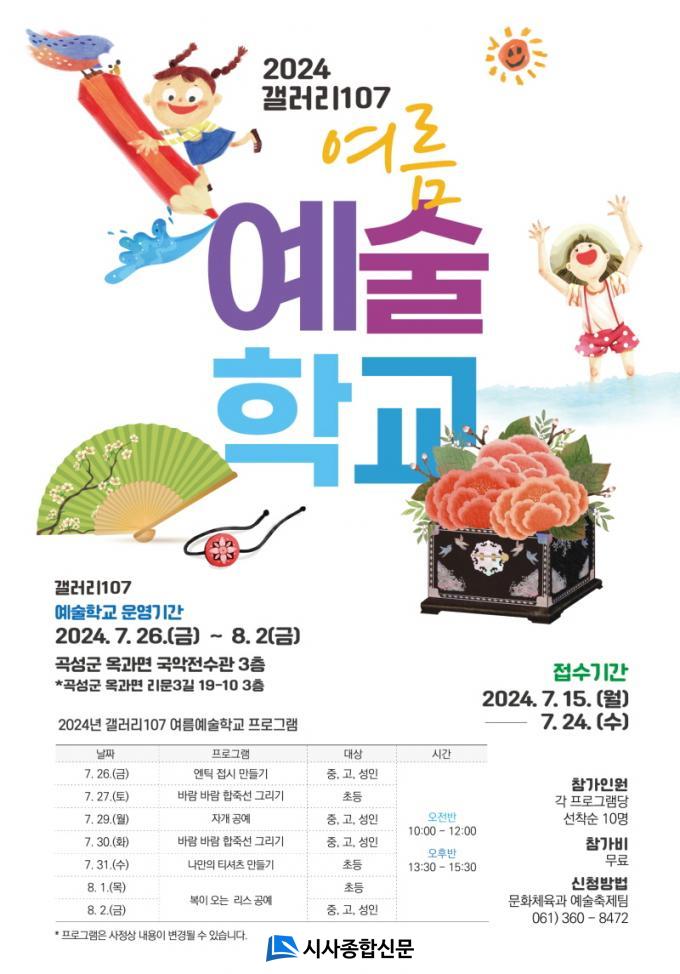 | °î¼º±º, °¶·¯¸® 107 ¿©¸§ ¿¹¼úÇб³ ÇÁ·Î±×·¥ Âü°¡ÀÚ ¸ðÁý 7¿ù 26ÀϺÎÅÍ 8¿ù 2ÀϱîÁö ¿î¿µ ÀÚ°³ °ø¿¹, µµÀڱ⠸¸µé±â µî ´Ù¾çÇÑ ÇÁ·Î±×·¥ ¹«·á Á¦°ø |
