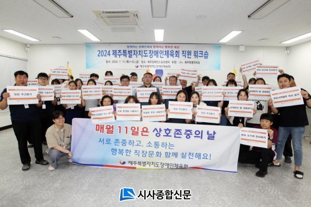 [½Ã»çÁ¾ÇսŹ® = °í¼º¹Î ±âÀÚ] Á¦ÁÖÆ¯º°ÀÚÄ¡µµÀå¾ÖÀÎüÀ°È¸(ȸÀå ¿À¿µÈÆ)´Â 11ÀÏ¿¡ Àå¾ÖÀÎüÀ°È¸Á÷¿øµéÀÇ ¿ª·®°È ¹× ¼ÒÅëÀ» À§ÇÏ¿© Á¦ÁÖÀå¾ÖÀνºÆ÷Ã÷¼¾ÅÍ¿¡¼ Á÷¿ø ¿öÅ©¼óÀ» °³ÃÖÇÏ¿´´Ù.