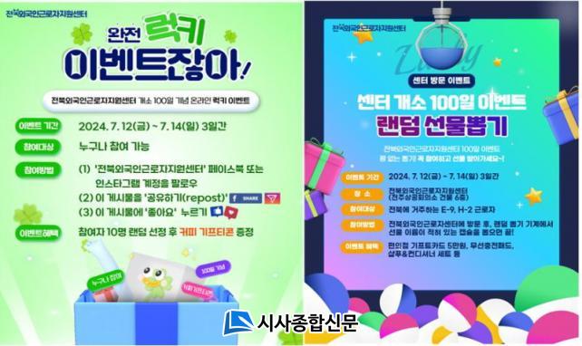 ¿Â¶óÀÎ À̺¥Æ®´Â °³ÀÎ SNS¸¦ °¡Áø »ç¶÷ÀÌ¸é ³»¡¤¿Ü±¹ÀÎ ´©±¸³ª Âü¿© °¡´ÉÇÏ´Ù. ÀüºÏ¿Ü±¹ÀαٷÎÀÚÁö¿ø¼¾ÅÍÀÇ SNS(ÆäÀ̽ººÏ°ú ÀνºÅ¸±×·¥) °èÁ¤À» ÆÈ·Î¿ìÇϰí, À̺¥Æ® °Ô½Ã¹°¿¡ ¡®ÁÁ¾Æ¿ä¡¯¸¦ ´©¸¥ ÈÄ, °Ô½Ã¹°À» °øÀ¯ÇÏ¸é µÈ´Ù. À̺¥Æ® Âü¿©ÀÚ Áß 10¸íÀ» ¹«ÀÛÀ§·Î ¼±Á¤ÇÏ¿©, Ä¿ÇÇ ±âÇÁƼÄÜÀ» ÁõÁ¤ÇÒ ¿¹Á¤ÀÌ´Ù.