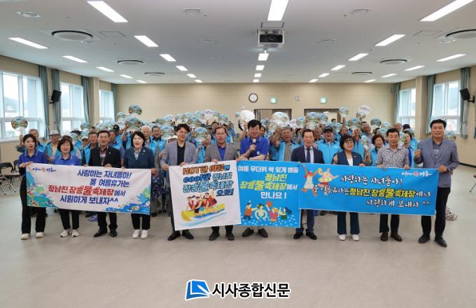 À̳¯ Çà»ç´Â ³ëÀÎÀÏÀÚ¸®»ç¾÷ Âü¿©ÀÚ 117¸í°ú ±è¼º ÀåÈﱺ¼ö, ±èÀç½Â ÀÇÀå, ±èÀçÇÐ Áö»çÀåÀÌ ÇÔ²²ÇØ ÀÚ¸®¸¦ ºû³Â´Ù. À̳¯ Çà»ç´Â ¹ß´ë½Ä¿¡ À̾î 7¿ù 27ÀϺÎÅÍ ½ÃÀÛÇÏ´Â Á¤³²Áø ÀåÈï¹°ÃàÁ¦ ¼º°ø °³ÃÖ¸¦ À§ÇÑ Áö¿ª ÁÖ¹ÎÀÇ Àû±ØÀûÀÎ Âü¿©¸¦ ´ÙÁüÇÏ´Â ÆÛÆ÷¸Õ½º¿Í ±âº» ¼Ò¾ç±³À° ¼øÀ¸·Î ÁøÇàµÆ´Ù.