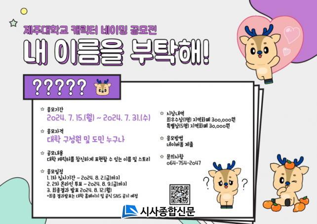 À̹ø °ø¸ðÀüÀº Á¦ÁÖ´ë¿¡ °ü½É ÀÖ´Â ´©±¸³ª Âü¿©ÇÒ ¼ö ÀÖÀ¸¸ç, ³×À̹ö ÆûÀ¸·Î ½Åû¼¸¦ Á¦ÃâÇÏ¸é µÈ´Ù. À̸§Àº 1Àδç ÃÖ´ë 2Á¡±îÁö Á¦ÃâÇÒ ¼ö ÀÖ°í, Àü¹®°¡µé·Î ±¸¼ºµÈ ½É»çÀ§¿ø´Ü ½É»ç¿Í ¿Â¶óÀÎ ÅõÇ¥¸¦ °ÅÃÄ ¼ö»óÀÛÀ» ¼±Á¤ÇÑ´Ù. ÃÖ¿ì¼ö»ó ¼ö»óÀÚ¿¡°Õ »ó±Ý 30¸¸¿øÀÌ ¼ö¿©µÈ´Ù. °ø¸ðÀü °ü·Ã ÀÚ¼¼ÇÑ »çÇ×Àº ´ëÇРȨÆäÀÌÁö °øÁö»çÇ׿¡¼ È®ÀÎÇÒ ¼ö ÀÖ´Ù.