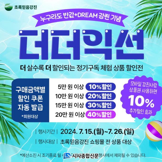 ƯÈ÷, ¡®´õ´õÀͼ±¡¯À̶ó´Â Å׸¶·Î ´õ ¸¹ÀÌ »ì¼ö·Ï ´õ Å« ÇÒÀÎÀ» ¹ÞÀ» ¼ö ÀÖ´Â ±âȸ¸¦ Á¦°øÇÑ´Ù. ÃʷϹÏÀ½°Áø ȸ¿øÀ̶ó¸é Á¤±â±¸µ¶ üÇè¿ë ÄíÆùÀÌ Áö±ÞµÇ¸ç, 5¸¸¿ø ÀÌ»ó ±¸¸Å ½Ã 10%, 10¸¸¿ø ÀÌ»ó ±¸¸Å ½Ã 20%, 15¸¸¿ø ÀÌ»ó ±¸¸Å ½Ã 30%, 20¸¸¿ø ÀÌ»ó ±¸¸Å ½Ã 40% ÇÒÀÎÀÌ Àû¿ëµÈ´Ù. ¿©±â¿¡ ¸ð¹ÙÀÏ °Áø»ç¶û »óǰ±ÇÀ» ±¸ÀÔÇϸé Ãß°¡·Î 10% ÇÒÀÎÀÌ Àû¿ëµÅ ÃÖ´ë 50% ÇÒÀÎ È¿°ú¸¦ ´©¸± ¼ö ÀÖ´Ù.