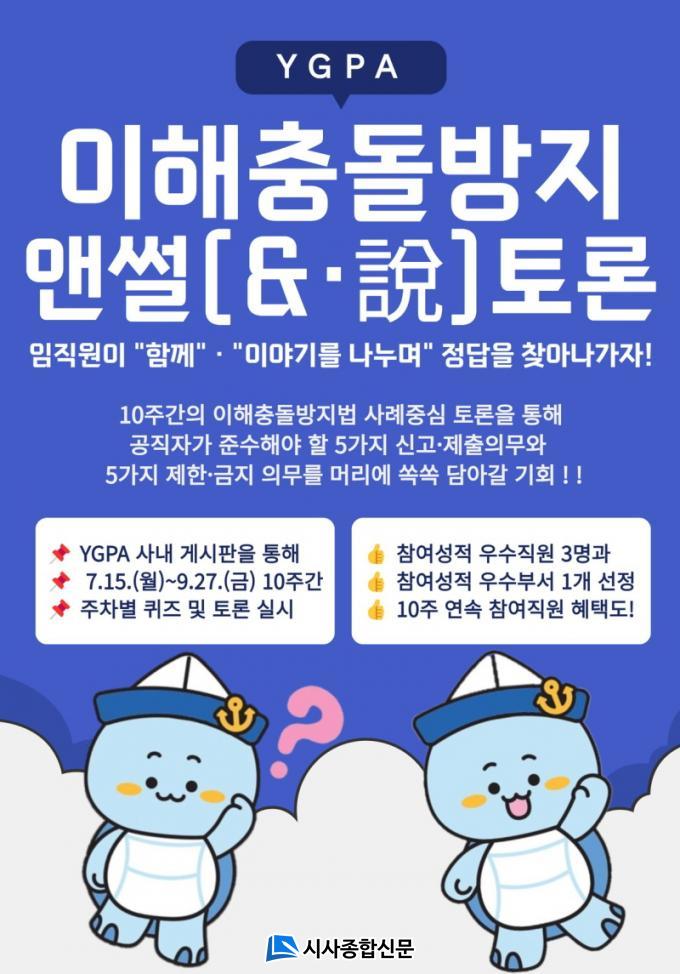 [½Ã»çÁ¾ÇսŹ® = Àå¹Î±Ô ±âÀÚ] ¿©¼ö±¤¾çÇ׸¸°ø»ç(»çÀå ¹Ú¼ºÇö, ÀÌÇÏ YGPA)´Â ÀÌÇØÃæµ¹¹æÁö¹ý¿¡ ´ëÇÑ ÀÓÁ÷¿ø ÀÌÇØµµ¸¦ ³ôÀ̰í, ¹ý·É À§¹ÝÀ» ¿¹¹æÇϱâ À§ÇØ 10ÁÖ°£ÀÇ ¿Â¶óÀÎ Åä·Ð ±³À° ÇÁ·Î±×·¥À» ½Ç½ÃÇÑ´Ù°í 15ÀÏ ¹àÇû´Ù.