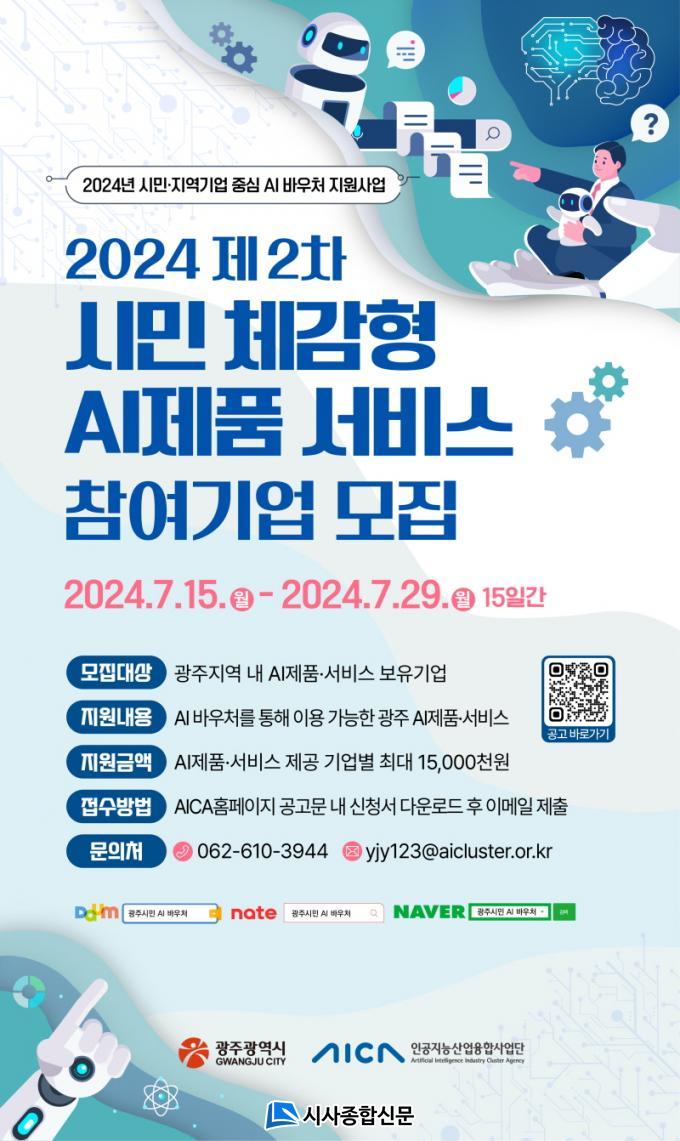 ±¤ÁÖ±¤¿ª½Ã(½ÃÀå °±âÁ¤)´Â Áö¿ª ÀΰøÁö´É±â¾÷ÀÇ ¼ºÀåÀ» ÃËÁøÇÏ°í ½Ã¹ÎÀÇ ÀΰøÁö´É±â¼ú ü°¨À» À§ÇØ ¡®½Ã¹Î¡¤Áö¿ª±â¾÷ Á᫐ ÀΰøÁö´É(AI) ¹Ù¿ìó Áö¿ø»ç¾÷¡¯¿¡ Âü¿©ÇÒ 15°³»ç¸¦ ¿À´Â 29ÀϱîÁö ¸ðÁýÇÑ´Ù.