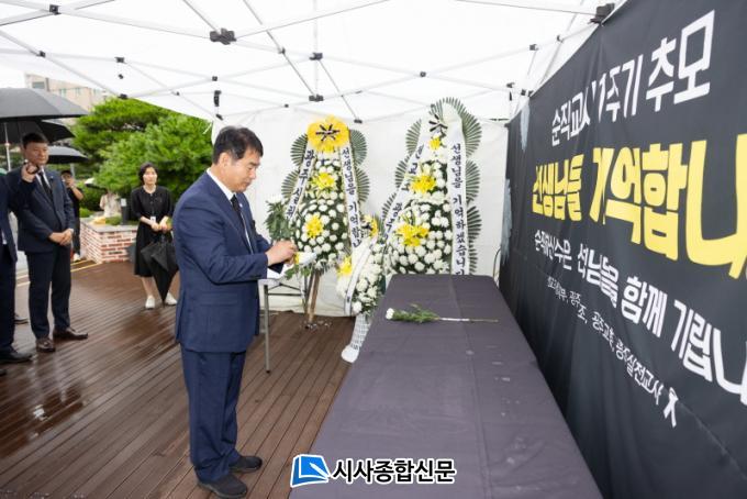 [½Ã»çÁ¾ÇսŹ® = ±è¿¬Èñ ±âÀÚ] ÀÌÁ¤¼± ±³À°°¨ÀÌ 16ÀÏ ½Ã±³À°Ã»¿¡ ¸¶·ÃµÈ ¼øÁ÷±³»ç 1ÁÖ³â Ãß¸ð°ø°£À» ã¾Æ ÇåÈÇÏ°í ¹¬³äÇß´Ù.