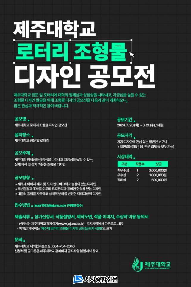 | Á¦ÁÖ´ëÇб³, Á¤¹® ¾Õ ·ÎÅ͸® Á¶Çü¹° µðÀÚÀÎ °ø¸ðÀü °³ÃÖ |