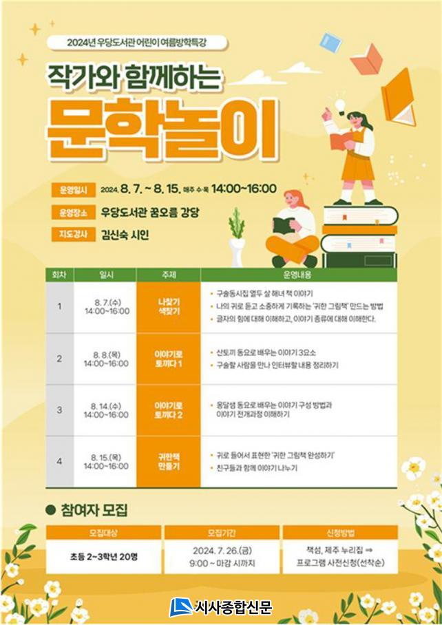 | Á¦Áֽà ¿ì´çµµ¼°ü, ÀÛ°¡¿Í ÇÔ²²ÇÏ´Â ¹®ÇгîÀÌ ¿î¿µ Ãʵî 2~3Çг⠴ë»ó, 7¿ù 26ÀϺÎÅÍ Âü¿©ÀÚ ¼±Âø¼ø Á¢¼ö |