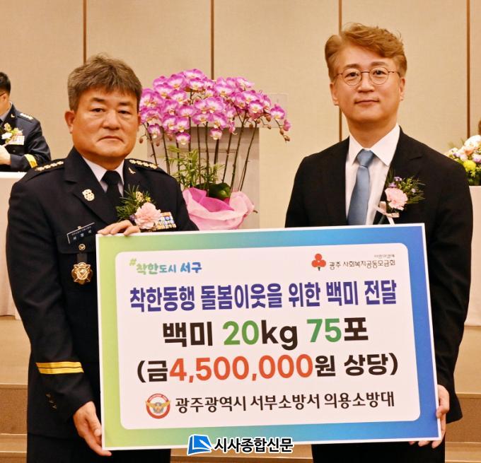 [½Ã»çÁ¾ÇսŹ® = ¿À½ÂÅà ±âÀÚ] ±èÀ̰ ¼±¸Ã»ÀåÀº 24ÀÏ ¿ÀÀü ±¤ÁÖ ¼ºÎ¼Ò¹æ¼ ÀÇ¿ë¼Ò¹æ´ë(´ëÀå ¼¹æ¼®)À¸·ÎºÎÅÍ °ü³» µ¹º½ÀÌ¿ôµéÀ» À§ÇÑ ¹é¹Ì20§¸ 75Æ÷(450¸¸¿ø »ó´ç)À» Àü´Þ¹Þ°í °¨»çÀÇ ¸¶À½À» ÀüÇß´Ù.