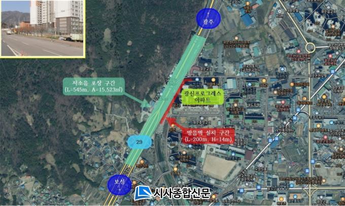 ±¤½ÅÇÁ·Î±×·¹½º¾ÆÆÄÆ® ¾Õ¿¡´Â ±âÁ¸¿¡ 5m ³ôÀÌÀÇ ¹æÀ½º®ÀÌ ¼³Ä¡µÇ¾î ÀÖÀ¸³ª 5Ãþ ÀÌ»ó ¼¼´ë¿¡¼´Â È¿°ú°¡ ¾ø°í, ±¹µµ 29È£¼± ±³Åë·®ÀÌ Á¡Â÷ ¸¹¾ÆÁü¿¡ µû¶ó µµ·Î ¼ÒÀ½ ÇÇÇØ¸¦ È£¼ÒÇÏ´Â ÁֹΠ¹Î¿øÀÌ ³¯·Î Áõ°¡Çϰí ÀÖ´Ù.