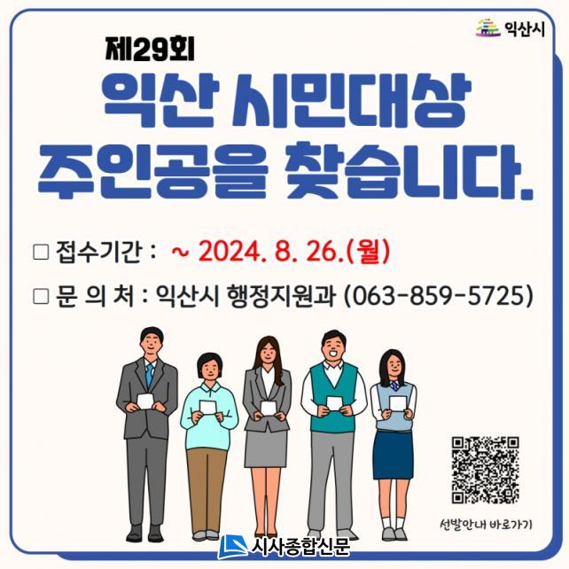 ÀÍ»ê½Ã´Â ´ÙÀ½´Þ 26ÀϱîÁö ÀÍ»ê½Ã ÃÖ°íÀÇ ¸í¿¹¿Í ±ÇÀ§¸¦ ÀÚ¶ûÇÏ´Â 'Á¦29ȸ ÀÍ»ê½Ã¹Î´ë»ó' Èĺ¸ÀÚ¸¦ ¸ðÁýÇÑ´Ù.