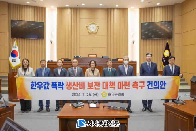 ¡®Çѿ찪 Æø¶ô »ý»êºñ º¸Àü ´ëÃ¥ ¸¶·Ã ¹× ¡¸ÇÑ¿ì»ê¾÷ ±âº»¹ý¡¹ Á¦Á¤ Ã˱¸ °ÇÀǾȡ¯Àº ÇØ³²±ºÀÇȸ Ãѹ«À§¿øÈ¸ À§¿øÀåÀÎ ¹Î°æ¸Å ÀÇ¿øÀÌ ´ëÇ¥ ¹ßÀÇÇß°í, ±ºÀÇȸ ÀÇ¿ø 10¸í Àü¿øÀÌ °øµ¿¹ßÀÇ¿¡ Âü¿©ÇØ º»È¸ÀÇ¿¡¼ °¡°áÇß´Ù.