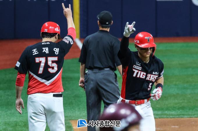 | ±èµµ¿µÀÌ 27ÀÏ °íô Ű¿òÀü¿¡¼ 4ȸÃÊ 2Á¡ Ȩ·±À» ½î¾Æ¿Ã¸®°í Á¶À翵 ÄÚÄ¡¿Í ÇÏÀÌÆÄÀ̺긦 Çϰí ÀÖ´Ù |