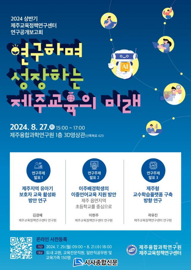 ¡®¿¬±¸ÇÏ¸ç ¼ºÀåÇÏ´Â Á¦ÁÖ±³À°ÀÇ ¹Ì·¡¡¯¶ó´Â ÁÖÁ¦·Î µðÁöÅÐ ½Ã´ë, ±³À°ÀÇ ´ëÀüȯ ¹æÇâÀ» ÇÔ²² °í¹ÎÇÏ´Â µµ³» ±³À°°¡Á·À» ´ë»óÀ¸·Î 2024Çг⵵ »ó¹Ý±â Á¦ÁÖ±³À°Á¤Ã¥¿¬±¸¼¾ÅÍ¿¡¼ ¿¬±¸µÈ 3°³ÀÇ ¿¬±¸ °á°ú°¡ ¹ßÇ¥µÈ´Ù.