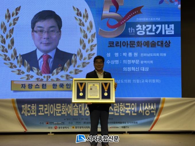 | Àü¶ó³²µµÀÇȸ ¹ÚÁ¾¿ø ÀÇ¿ø, ÄÚ¸®¾Æ¹®È¿¹¼ú´ë»ó ÀÇÁ¤Çõ½Å ´ë»ó ¼ö»ó ÄÚ¸®¾Æ¹®È¿¹¼ú´ë»ó ÀÚ¶û½º·± Çѱ¹ÀÎ ½Ã»ó½Ä¿¡¼ ÀÇÁ¤Çõ½Å ´ë»ó ¼ö»ó Äè°Å |