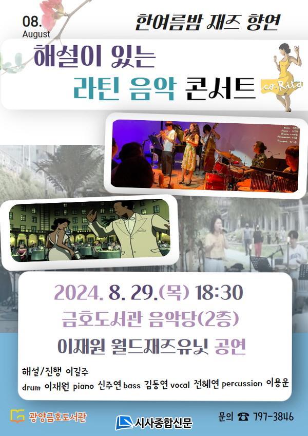 ¡®Çؼ³ÀÌ ÀÖ´Â ÇÑ¿©¸§ ¹ã ÀçÁî Ç⿬¡¯Àº °¿¬°ú °ø¿¬À» °áÇÕÇÑ ±ÝÈ£µµ¼°üÀÇ ¿¹¼ú Æ¯È Çà»ç´Ù. ±ÝÈ£µµ¼°üÀº Áö³ 6¿ùºÎÅÍ ÀçÁî À½¾ÇÀ» ÁÖÁ¦·Î Ư°À» 2ȸ ¿î¿µÇÑ ¹Ù ÀÖÀ¸¸ç À̹ø 8¿ù °ø¿¬Àº 3ȸÂ÷¿¡ ÇØ´çÇÑ´Ù. °ø¿¬ÀÇ ÁÖÁ¦´Â Áö³ °¿¬¿¡¼ ¼Ò°³ÇÑ °î Áß¿¡¼ ¡®¶óƾ À½¾Ç¡¯À» ¼±º°ÇÏ¿© µéÀ» ¼ö ÀÖ´Â ¡®Çؼ³ÀÌ ÀÖ´Â ¶óƾ À½¾Ç ÄܼƮ¡¯´Ù.