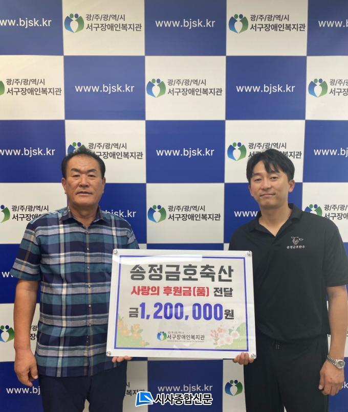 [½Ã»çÁ¾ÇսŹ® = ¿À½ÂÅà ±âÀÚ] ±¤ÁÖ±¤¿ª½Ã ¼±¸Àå¾ÖÀκ¹Áö°ü(°üÀå À̴븸)Àº 30ÀÏ ¼ÛÁ¤±ÝÈ£Ãà»ê(´ëÇ¥ ±è¿ÕÁØ)À¸·ÎºÎÅÍ ¡®»ç¶ûÀÇ ÈÄ¿ø±Ý(ǰ)¡¯ ÃÑ120¸¸¿ø(½Ò 287kg, ÈÄ¿ø±Ý 30¸¸¿ø)À» ÈÄ¿ø¹Þ¾Ò´Ù