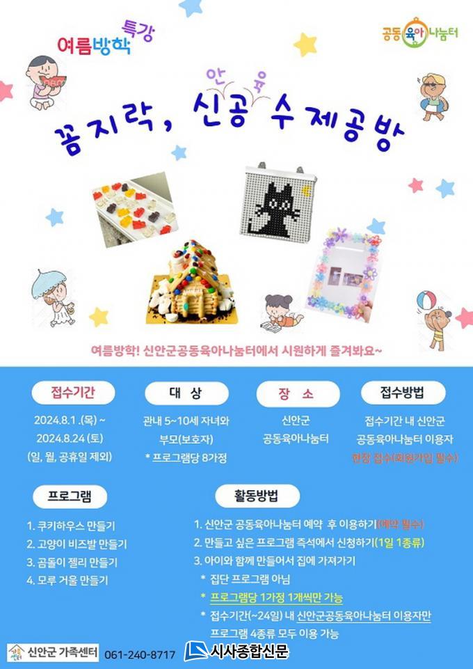 [½Ã»çÁ¾ÇսŹ® = ¿À½ÂÅà ±âÀÚ] ½Å¾È±º °¡Á·¼¾ÅÍ´Â 8¿ù 1ÀϺÎÅÍ 24ÀϱîÁö ¿©¸§¹æÇÐ ±â°£¿¡ ¿Â°¡Á·ÀÌ Âü¿©ÇÒ ¼ö ÀÖ´Â ¡®²ÄÁö¶ô ½Å°ø ¼öÁ¦ °ø¹æ¡¯ ÇÁ·Î±×·¥À» ¿î¿µÇÒ ¿¹Á¤ÀÌ´Ù.