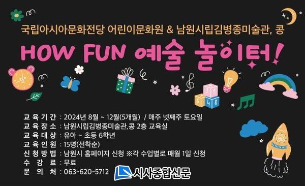 [½Ã»çÁ¾ÇսŹ® = ¿À½ÂÅà ±âÀÚ] ¡¸³²¿ø½Ã¸³±èº´Á¾¹Ì¼ú°ü,Ä᡹Àº 2024³â 8¿ùºÎÅÍ 12¿ù±îÁö ±¹¸³¾Æ½Ã¾Æ¹®ÈÀü´çÀç´Ü(»çÀå ±è¼±¿Á¡¤ÀÌÇÏ¡®ACCÀç´Ü¡¯)°ú ÇÔ²² ACC ¾î¸°ÀÌ ¹®È¿¹¼ú±³À° ÇÁ·Î±×·¥¡®How Fun(ÇÏ¿ìÆÝ) ¿¹¼ú³îÀÌÅÍ¡¯¸¦ ¿î¿µÇÑ´Ù°í ¹àÇû´Ù.