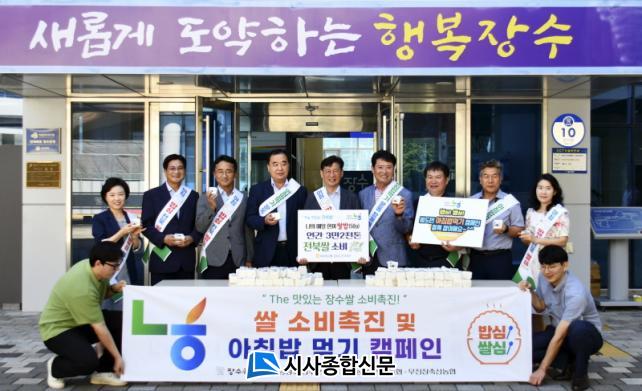 ¶± ³ª´® Çà»ç¿¡´Â ÃÖÈÆ½Ä Àå¼ö±º¼ö, ±èÁØ¿À ³óÇùÁß¾Óȸ Àå¼ö±ºÁöºÎÀå, ±è¿ëÁØ Àå¼ö³óÇùÁ¶ÇÕÀå, °ûÁ¡¿ë Àå°è³óÇùÁ¶ÇÕÀå, ¼ÛÁ¦±Ù ¹«ÁøÀåÃàÇùÁ¶ÇÕÀå µî ÀÌ Âü¼®ÇØ Àå¼ö½Ò·Î ¸¸µç ¶±À» ³ª´©¸ç ¾ÆÄ§¹ä ¸Ô´Â ¹®È È®»êÀ» ÅëÇÑ Àå¼ö½Ò ¼ÒºñÃËÁø ¹× ¾ÆÄ§¹ä ¸Ô±â ¿îµ¿À» °¡Á³´Ù.