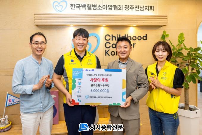 | ±¤ÁÖÀºÇà ³ëµ¿Á¶ÇÕ, ¹éÇ÷º´ ¼Ò¾Æ¾Ï ȯ¾Æ À§ÇÑ ±âºÎ±Ý Àü´Þ ±¤ÁÖÀºÇà ÀÓÁ÷¿øµéÀÇ ³¡Àü¸ðÀ¸±â ±â±ÝÀ¸·Î Á¶¼ºµÈ ±Ý¾× ÀϺΠ±âºÎ