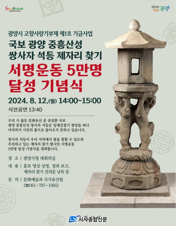 Á¤ÀÎÈ ±¤¾ç½ÃÀåÀº ¡°¹®ÈÀ¯»êÀº Á¦ÀÚ¸®¿¡ ÀÖÀ» ¶§ ÁøÁ¤¼ºÀÌ ÀÖ°í, °¡Àå ºûÀ» ¹ßÇÒ ¼ö ÀÖ´Ù¡±¶ó¸ç ¡°±¤¾ç½ÃÀÇ ÀÚ¶û½º·¯¿î ½Ö»çÀÚ ¼®µîÀÌ ÇÏ·ç¼ÓÈ÷ ½Ã¹ÎÀÇ Ç°À¸·Î µ¹¾Æ¿Ã ¼ö ÀÖµµ·Ï ÃßÁøÇÑ ¹ü½Ã¹Î ¼¸í¿îµ¿¿¡ ¸¹Àº ½Ã¹Î²²¼ µ¿ÂüÇØÁֽŠ°Í¿¡ °¨»çÇÏ´Ù¡±¶ó°í ÀüÇß´Ù.