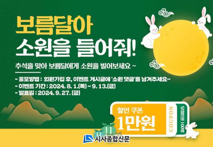 ¸ÕÀú, Ãß¼®¸ÂÀÌ¡®º¸¸§´Þ¾Æ ¼Ò¿øÀ» µé¾îÁà!¡¯´ñ±Û À̺¥Æ®¸¦ ÁøÇàÇÑ´Ù. À̹ø À̺¥Æ®´Â °î¼º¸ô¿¡ °¡ÀÔÇÑ µÚ Ãß¼® ¼Ò¿øÀ» ´ñ±Û·Î ³²±â¸é Ãß÷À» ÅëÇØ À̺¥Æ® Âü¿©ÀÚ Áß 100¸íÀ» ¼±Á¤, °î¼º¸ô 1¸¸ ¿ø ÄíÆùÀ» Á¦°øÇÑ´Ù. ¿À´Â 9¿ù 13ÀϱîÁö ÁøÇàµÇ¸ç, 9¿ù 27ÀÏ Ãß÷À» ÅëÇØ °³º° ¾È³»ÇÒ ¿¹Á¤ÀÌ´Ù.