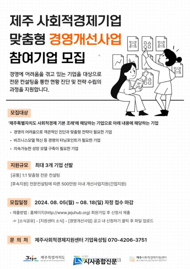 | Á¦ÁÖµµ»çȸÀû°æÁ¦Áö¿ø¼¾ÅÍ, ¸ÂÃãÇü °æ¿µ°³¼±»ç¾÷ Âü¿©±â¾÷ ¸ðÁý ¸ÂÃãÇü °æ¿µ°³¼±»ç¾÷ Àü¹® ÄÁ¼³ÆÃ ¹× °³¼±»ç¾÷ ÈÄ¼Ó Áö¿ø |