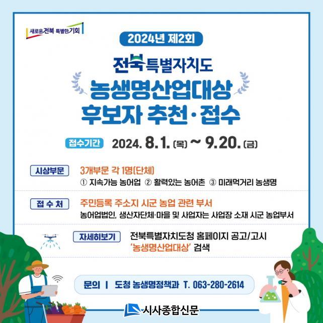°¢ ºÐ¾ßº°·Î ¿ì¼öÇÑ Ç°Áú·Î ³ó¾÷ »ý»ê¼ºÀ» ³ô¿© ³ó°¡ ¼Òµæ Áõ´ë¿¡ °øÇåÇÑ ÀÚ, ³ó¾î¾÷ÀÎÀÇ ±ÇÀÍ º¸È£¿Í ÁöÀ§ Çâ»ó¿¡ ±â¿©ÇÑ ÀÚ, ½Äǰ ¼ÒÀç µîÀ» ±â¹ÝÀ¸·Î ±â¼ú ¹× »ê¾÷ °£ À¶ÇÕÀ» ÅëÇØ ³ó»ý¸í»ê¾÷ ¹ßÀü¿¡ ±â¿©ÇÑ ÀÚ¸¦ ´ë»óÀ¸·Î °¢ 1¸í(´Üü)À» ¼±¹ßÇÑ´Ù.