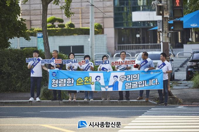 ½Ã¹ÎµéÀÇ Ãâ±Ù ½Ã°£´ë¿¡ ¸ÂÃç ¡®³ªºÎÅÍ ½ÇõÇϴ û·Å, ÀÏ·ùµµ½Ã ¼øÃµÀ» ¸¸µì´Ï´Ù¡¯¶ó´Â ½½·Î°Ç ¾Æ·¡ ¼ÕÆÖ¸»°ú Çö¼ö¸·À» µé°í û·ÅÀÇ Á߿伺°ú ½Çõ ¹æ¾ÈÀ» È«º¸Çß´Ù.