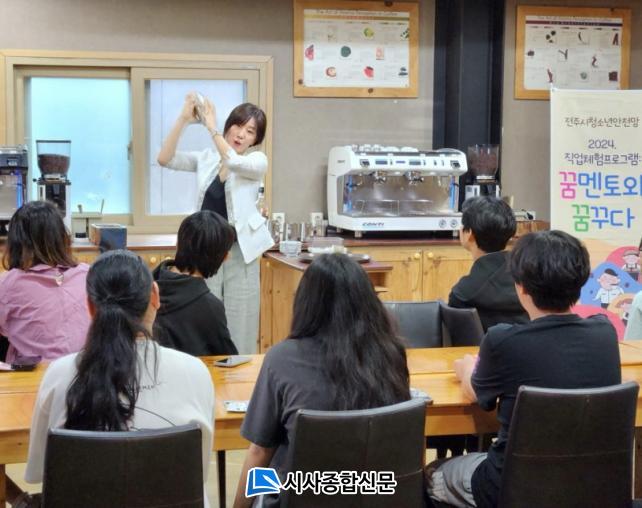 À̳¯ Á÷¾÷üÇè¿¡ Âü¿©ÇÑ Ã»¼Ò³âÀº ¹®¿µ¹Ì ²Þ¸àÅä(¹®¿µ¹ÌÄ¿Çǹ®È¾ÆÄ«µ¥¹Ì ´ëÇ¥)°¡ ¹Ù¸®½ºÅ¸»Ó ¾Æ´Ï¶ó ÆÄƼ¼Î µî ´Ù¾çÇÑ ÀÚ°ÝÁõÀ» ÃëµæÇϸç ÇöÀç ²ÞÀ» ÀÌ·é °úÁ¤¿¡ ´ëÇØ À̾߱⸦ µéÀ¸¸ç Áø·Î¿¡ ´ëÇØ ±íÀÌ »ý°¢Çغ¸´Â ½Ã°£À» °¡Á³´Ù. ¶Ç û¼Ò³âµéÀº ¿øµÎ¸¦ °í¸£´Â ¿¡½ºÇÁ·¹¼Ò Ä¿ÇǸ¦ ³»·Áº¸°í, ÄÚÄÚ³Ó ¶ó¶¼¸¦ Á÷Á¢ ¸¸µé¾îº¸´Â µî ´Ù¾çÇÑ Ã¼ÇèȰµ¿µµ º´ÇàÇß´Ù.