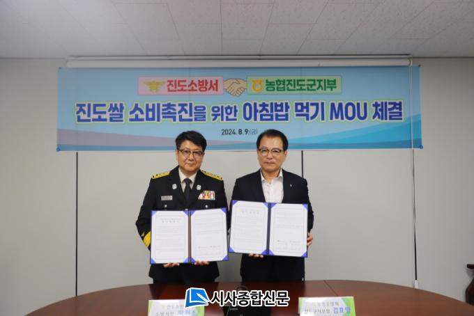 [½Ã»çÁ¾ÇսŹ® = ¿À½ÂÅà ±âÀÚ] NH³óÇù Áøµµ±ºÁöºÎ(ÁöºÎÀå ±èÈ¿¿µ)¿Í Áøµµ¼Ò¹æ¼(¼Àå ¹ÚõÁ¶)´Â 9ÀÏ Áøµµ½Ò ¼ÒºñÃËÁøÀ» À§ÇÑ ¾ÆÄ§¹ä ¸Ô±â ¾÷¹«Çù¾à(MOU)À» ü°áÇÏ¿´´Ù.