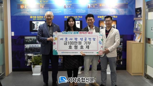 [½Ã»çÁ¾ÇսŹ® = °í¼º¹Î ±âÀÚ] È£ÇüÈ£Á¦ ¹êµå(ȸÀå ±èÀç¹Î)´Â 12ÀÏ Á¦ÁÖÆ¯º°ÀÚÄ¡µµ»çȸº¹ÁöÇùÀÇȸ(ȸÀå °í½ÂÈ)¿¡ ÀÌ¿ô »ç¶û ¼º±Ý 100¸¸¿øÀ» Àü´ÞÇß´Ù.