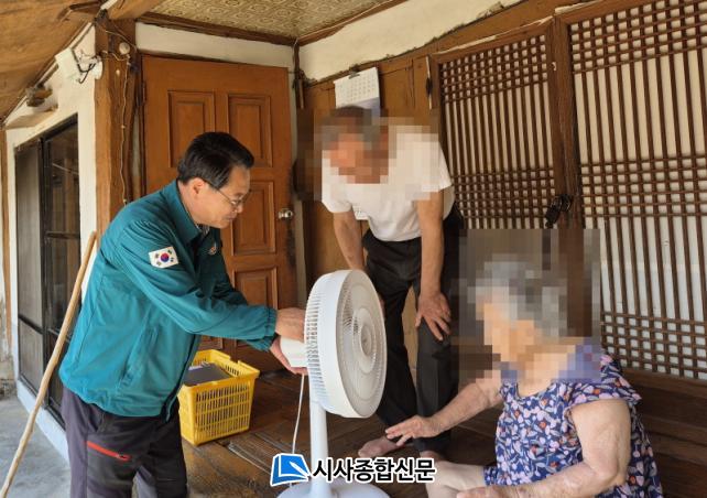 ÇãÀμ± Áֹκ¹Áö°úÀåÀº ¡°Áö¼ÓµÇ´Â Æø¿°¼Ó¿¡¼ ¾ÈÀü»ç°í »ç°¢Áö´ë¿¡ °è½Ã´Â ¾î¸£½Åµé¿¡°Ô ±ä±Þ ±¸È£¹°Ç°À¸·Î ¼±Ç³±â¸¦ Àü´ÞÇÏ¿©, ¾î¸£½ÅµéÀÌ Á¶±ÝÀ̳ª ÇູÇÏ°í ¾ÈÀüÇÑ ¿©¸§À» º¸³»½Ã±æ ¹Ù¶õ´Ù¡±°í ÀüÇß´Ù.