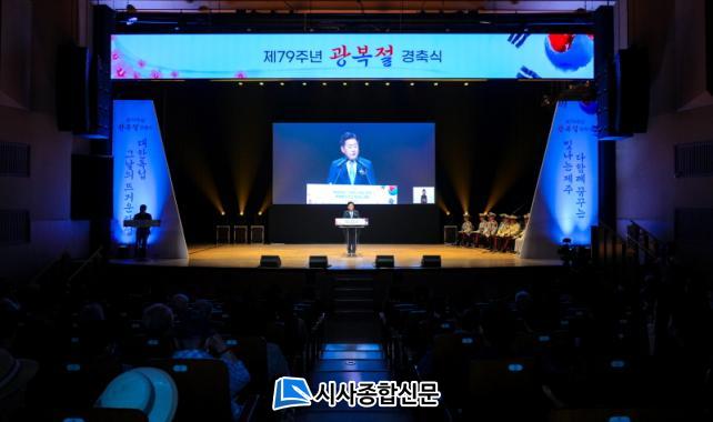ÀÌ¾î ±¤º¹ 79ÁÖ³âÀ» ±â³äÇÏ´Â ¿µ»óÀ¸·Î Á¦ÁÖ ÃÖÃÊÀÇ Ç×ÀϿÀÎ ¡®¹«¿À¹ýÁ¤»ç Ç×ÀϿ¡¯À» ¼Ò°³Çß´Ù. Âü¼®ÀÚµéÀº Á¦ÁÖÀÎÀÇ ±»°ÇÇÑ Ç×ÀÏ ÀÇÁö¿Í ¼ø±¹¼±¿µéÀÇ ¼þ°íÇÑ Èñ»ýÁ¤½ÅÀ» µÇ»õ±â¸ç, µ¶¸³À¯°øÀÚ¿Í À¯°¡Á·µé¿¡°Ô Á¸°æ°ú °¨»çÀÇ ¸¶À½À» ÀüÇÏ´Â ½Ã°£À» °¡Á³´Ù.